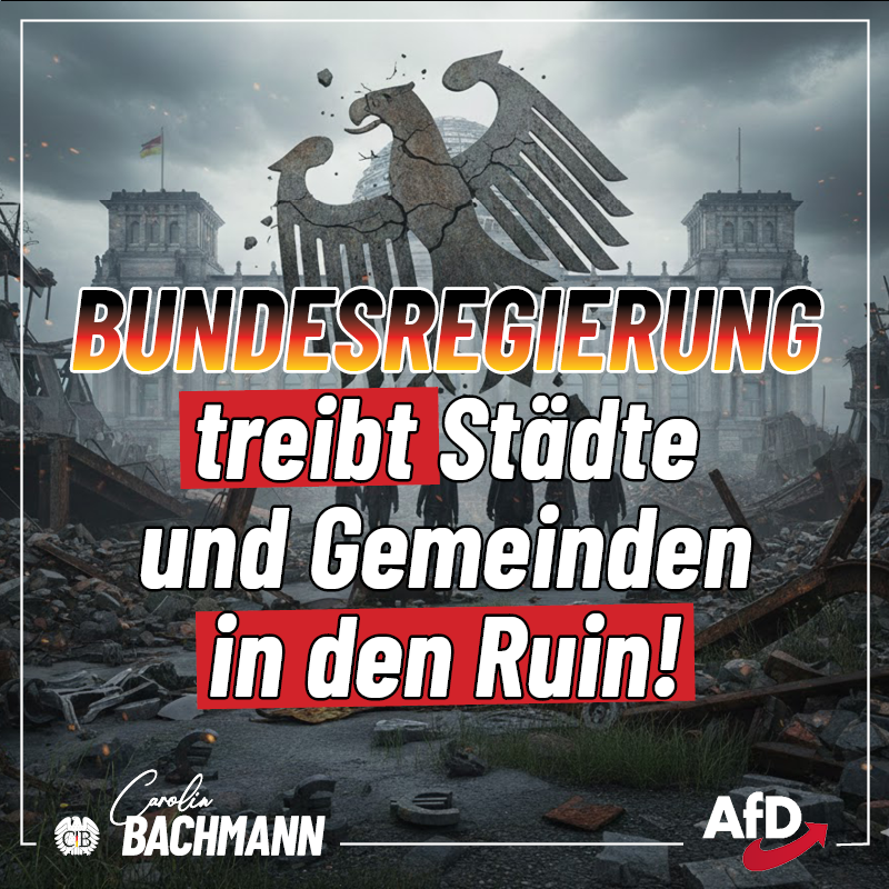 Berlin, 8. Januar 2026. Die heute veröffentlichten Zahlen des Statistischen Bundesamtes zur Kassenstatistik der ersten drei Quartale 2025 belegen eine katastrophale Schieflage der kommunalen Haushalte. Während die kommunalen Kern- und Extrahaushalte Einnahmen in Höhe von 275,1 Milliarden Euro verzeichneten (+5,5 % zum Vorjahreszeitraum), kletterten die Ausgaben um 5,9 % auf 303,4 Milliarden Euro. Das Finanzierungsdefizit vergrößerte sich damit auf 28,3 Milliarden Euro für den Berichtszeitraum. Das sind 2,4 Milliarden Euro mehr als im Vorjahreszeitraum und übersteigt bereits jetzt das Rekorddefizit des gesamten Jahres 2024 (24,8 Milliarden Euro). Als wesentlicher Kostentreiber gelten die explodierenden Sozialausgaben, die auf der Ausgabenseite die stärksten Zuwächse verzeichneten. Dazu erklärt die kommunalpolitische Sprecherin der AfD-Bundestagsfraktion, Carolin Bachmann: